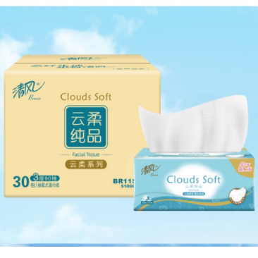 清风抽纸云柔纯品3层90抽30包S压花餐巾纸家用卫生面巾纸巾餐巾纸